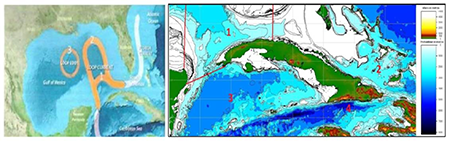 Una de las corrientes oceánicas que más se ha estudiado por los científicos en el área geográfica del Atlántico Norte es la Corriente de Lazo (Hofmann & Worley, 1986). Se localiza entre las costas occidentales de Cuba y la zona centro-oriental del Golfo de México, al este del estrecho de Yucatán y al oeste del estrecho de la Florida, de manera que extrae sus aguas de la Corriente de Yucatán, que es alimentada por la Corriente del Caribe y proporciona un vínculo vital en el transporte de las aguas oceánicas de los trópicos hacia latitudes más altas (Pérez & Schneider, 2011). Generalmente se mueve hacia el norte, ingresando en el Golfo de México para luego girar en sentido de las agujas del reloj y unirse a la Corriente de la Florida. La velocidad de la corriente, como promedio es de 1-4 nudos (0.5-2 m/s), mientras que la estructura de lazo se puede conservar hasta 1 km de profundidad.
