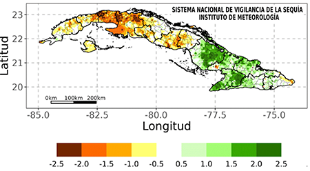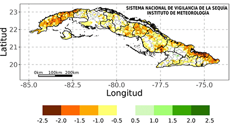 Asociado con el comportamiento en cada uno de los meses del año, el periodo poco lluvioso, que cerró en abril de 2023, finalizó con déficit significativos en los acumulados de la lluvia en general en todo el país. El déficit acumulado promedio superó los 100 mm en las regiones occidental y central, mientras en la oriental llegó a alcanzar los 180 mm, los que clasificaron en la categoría de severo. Las provincias mas afectadas fueron Holguín y Guantánamo en la que los déficit superaron los 200 mm, representando anomalías de -2.58 y -2.68, respectivamente y clasifican en la categoría de déficit extremos.