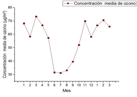 Se determinó la concentración media mensual de O3 para todos los meses estudiados (figura 3).