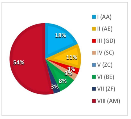 Se calculó el porciento que representó cada TSS del total de días de 2021 que se analizaron (figura 6a). Se realizó el mismo procedimiento para el primer trimestre del 2022 (figura 6b).
