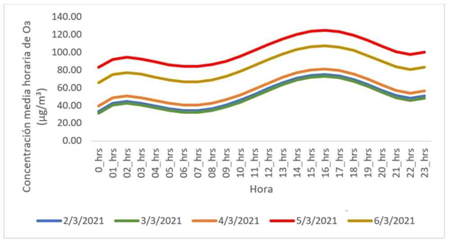 Se estimaron las concentraciones horarias promedio de O3. Se muestran en la figura 2.