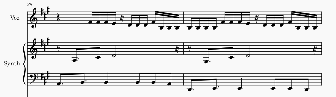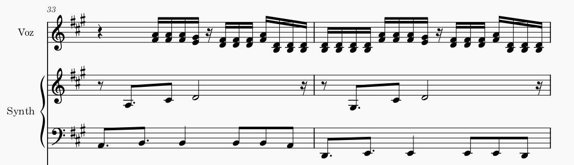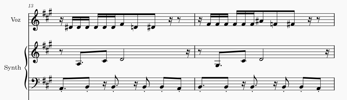 Há ainda a presença de vários timbres, motivos que aparecem em momentos específicos e logo se vão. Esse é um recurso que falaremos no tópico de sonorização. No mais, é uma música com melodia cantada de forma rápida, o que entra em contraste com o baixo e com o arpejo do teclado, que ficam num meio termo com as colcheias, e em harmonia com a percussão, que possui uma base mais estática no kick e elementos mais movimentados que se constroem e se desenvolvem durante a canção.
