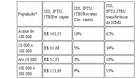 Antinarelli (2012), ao analisar a questão da arrecadação tributária dos municípios do Estado de Minas Gerais, baseado em dados obtidos junto ao relatório das receitas dos municípios mineiros em 2009, elaborado pela Secretaria do Tesouro Nacional (STN), demonstra a ineficiência dos municípios menores na arrecadação de tributos, se em com-paração com municípios maiores (Quadro 1)4.