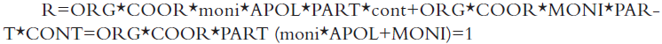 Las explicaciones se desarrollan a partir de las tres diferentes capacidades estatales técnico-administrativas y las tres capacidades político-relacionales, como variables causales (Cuadro 5). Los argumentos presentados no tienen contradicciones que tengan que ser resueltas, o sea no hay dos argumentos iguales para diferentes resultados, por lo cual seleccionamos las combinaciones con resultado R=1=cambios de tercer orden para aplicar el procedimiento de simplificación de la matriz booleana.