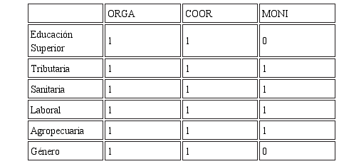 En una configuración que coincide con los casos de las políticas de defensa y de educación, la única capacidad estatal presente es técnica-administrativa, y es la coordinación intra-gubernamental.