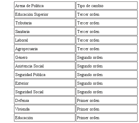 De otra manera, se registra un cambio de tercer orden en las políticas públicas cuando se desarrollan tanto capacidades técnico-administrativas como capacidades estatales político-administrativas.