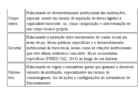 A investigação desses elementos tem contribuído sobremaneira à avaliação do desempenho técnico e operacional dos Estados, revelando-se debate notadamente profícuo no campo de estudos e análises da administração pública gerencial (Vaz, 2015).A despeito disso, algumas questões ainda têm sido pouco ou mesmo modicamente exploradas dentre o seu arcabouço analítico constitutivo. Duas dessas questões despontam como prementes nessa linha. Primeiro, a investigação dos fatores e/ou mecanismos associados ao desenvol-vimento das capacidades no âmbito das instituições públicas, especialmente no que tange às diferenças e similaridades advindas desse processo e seu impacto nas conformações institucional e administrativa de cada órgão. Segundo, a averiguação da forma pela qual os distintos arranjos organizacionais resultantes desse processo repercutem no trabalho das instituições que o levam a cabo, particularmente no que tange aos resultados apresentados por essas instituições na gestão de políticas públicas.