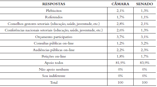 Keywords: Education for democracy, Political values, Brazilian National Congress, Brazilian Chamber of Deputies, Brazilian Senate.