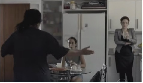 O auge da disputa pela demarcação do território se dará na cena em que Bárbara chama Val para uma conversa séria e pede, explicitamente, que cuide para que Jéssica “fique da porta da cozinha pra lá” (fora), numa clara alusão ao passado escravocrata que fundou muitos dos hábitos de segregação de classe da sociedade brasileira atual. Neste contexto, o perfil da ocupação de doméstica “remonta não só às raízes escravistas [...] mas também às tradicionais concepções de gênero, que representam o trabalho doméstico como uma habilidade natural das mulheres” (IPEA, 2011, p. 4).