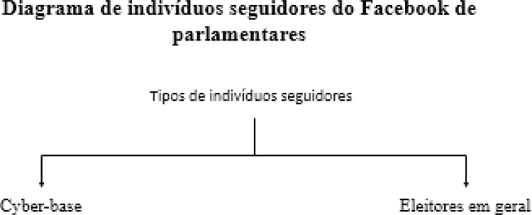 Almeida (2017) identifica que, nas mídias sociais, especificamente o Facebook, há um grupo maior de seguidores do que se nomeia como base do parlamentar. Esse grupo é denominado pela autora como ciber-base. A ciber-base seria, portanto, um grupo de seguidores de um determinado parlamentar para além da sua base eleitoral. Ou seja, pessoas que concordam programaticamente com aquele parlamentar, mas que não necessariamente votam nele, ou porque têm outras(os) candidatas(os) ou porque simplesmente não têm títulos eleitorais registrados em colégio eleitoral que possibilita o voto nessas figuras (ALMEIDA, 2017, p. 170).