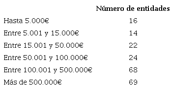 Otro dato interesante es el presupuesto del último año que manifiestan las entidades y que se recoge en la Tabla 2. Como se puede ver, hay un claro predominio de las que tienen presupuestos por encima de 100.000 y de 500.000€, por tanto, las que cuentan con más recursos y las que han de cumplir con la Ley de Transparencia.