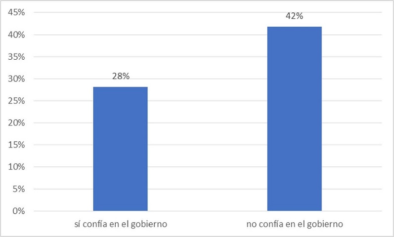 Corresponde con la teoría que los que expresan confiar en el gobierno tienen un conocimiento significativamente inferior de la razón de confinamiento. Entre ellos, solo un 28% sabe por qué no pueden salir normalmente. En la población que desconfía al gobierno, este número es mucho mayor, con 42%. Estos datos comprueban que una parte considerable de la población carece de capacidad de autorreflexión crítica. Simplemente hacen lo que les dicen, sin preguntarse por qué, sin, ni siquiera, informarse bien por qué.