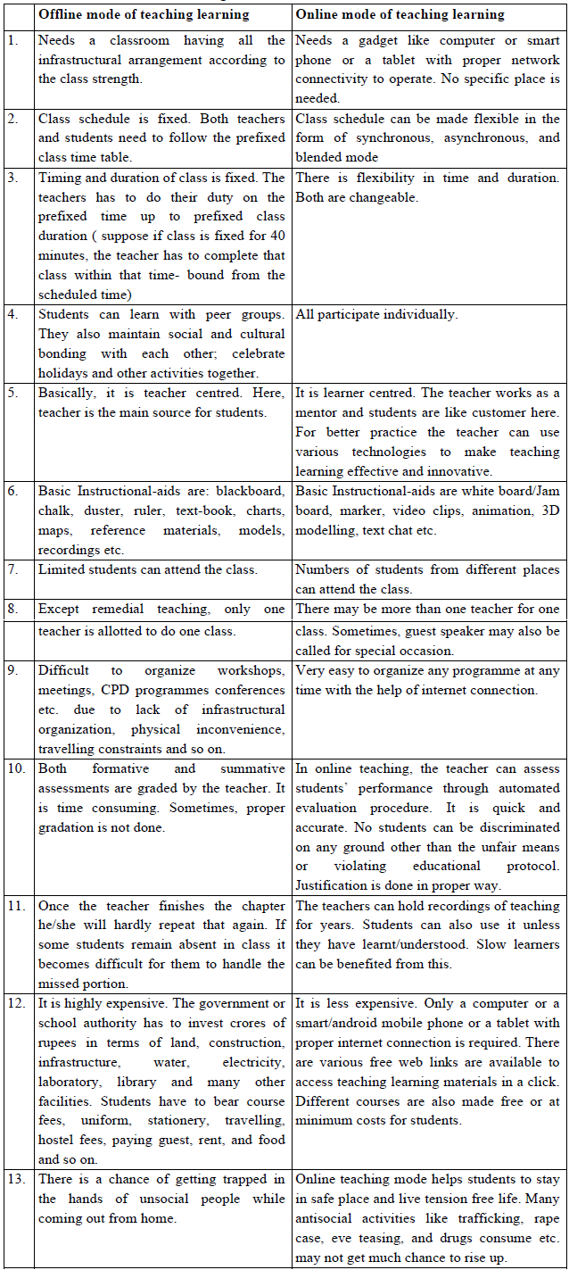 Online teaching is a next level of teaching than to the traditional method of teaching done in offline mode. Here, difference is categorized.