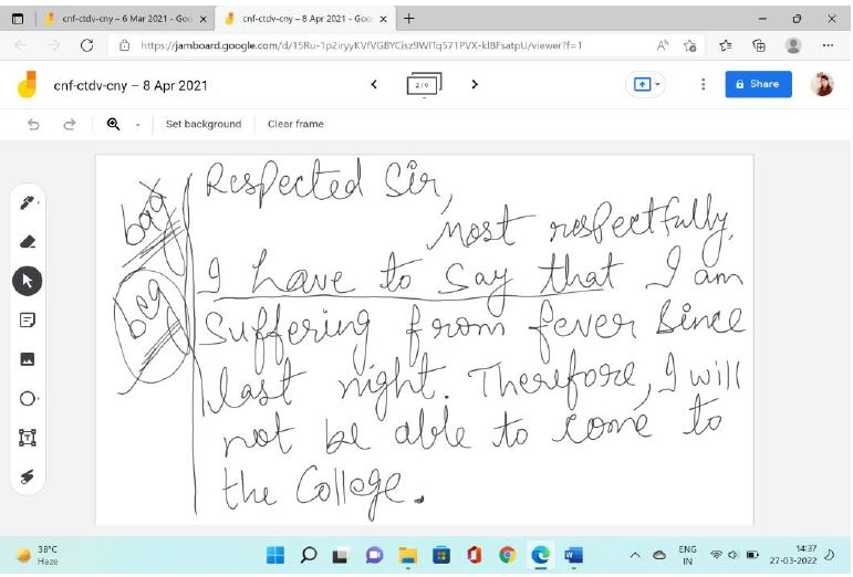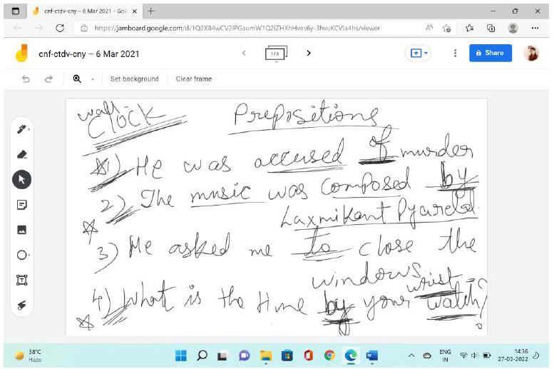 It was well tried through laptop teaching in the English classroom where grammar portion was taught through several examples and exercises were solved smoothly. The most crucial part of this technique was that students were able to note down the exercises/work without any spelling mistakes. The bonus part was that they can take the screenshots and even save the answers for the future reference. Such jam boards were also beneficial from the point of view of date wise records of the classes taken. It was the gem of the online classes and left the teachers with a pure gratification.