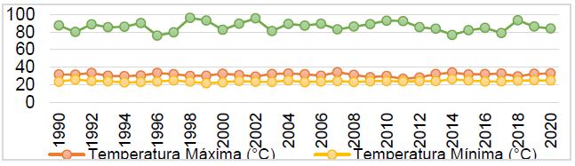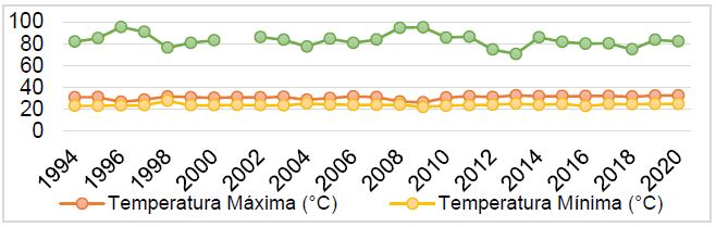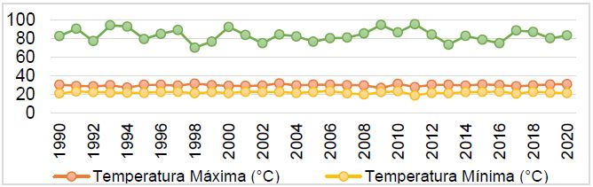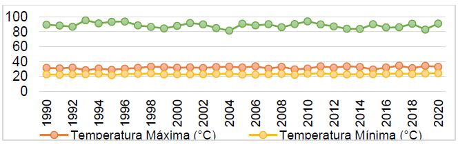 Na cidade de Belém, o ano de 2020 também foi detectado como homogêneo entre a maioria dos anos analisados, sem grandes variações. O cluster B corresponde aos anos que demonstraram pouca variação entre Tmax e Tmin e valores altos de URM em relação aos demais anos. O cluster Creferente ao ano atípico de 1993 demonstrou-se o ano com maior proximidade entre valores Tmax e Tmin, sugerindo pouca variação, e com o valor de URM mais alto entre os 30 anos analisados. O cluster D referente ao ano atípico de 1995 apresentou valor de URM com pouca variação, porém apresentou os valores mais baixos de Tmax e Tmin entre todos os anos analisados. A análise dos dados aponta que, entre as cidades analisadas, Belém foi a capital que demonstrou a menor variação em todas as variáveis analisadas, além de, no que se refere ao comportamento da URM, ao longo do período analisado, detectou-se um comportamento cíclico que se repete aproximadamente a cada 4 ou 5 anos. Conforme Oliveira e outros (2020) apontaram, a cidade de Belém já demonstra sinais de ocorrência de mudanças climáticas relacionadas à ação humana e à urbanização. No entanto, conforme a Organização das Nações Unidas (2019) analisou em escala global, ainda que a última década tenha sido focada na conscientização a respeito das mudanças climáticas e suas consequências, os impactos ambientais estão cada vez mais significantes, de forma que mesmo as mudanças em menor escala exercem um papel importante para sua mitigação (UN, 2019). Sendo assim, é necessário refletir sobre quais estratégias poderiam ser empregadas de modo a gerar mudanças significativas e em longo prazo.