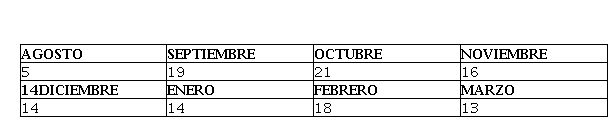 De los ciento veinte días laborados en los centro educativos, se muestra que en el mes de agosto, fueron cinco al comienzo, siendo el mes con menos días trabajador mientras que los 21 días del mes de octubre representan la mayor cantidad de días trabajados, obteniéndose un promedio de quince días en los ocho meses transcurridos.
