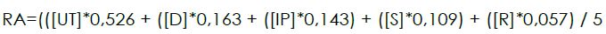 Sendo assim, a partir da matriz normalizada foram calculadas as médias de importância entre as variáveis. Para validar as comparações par a par, calculou- se a Razão de Consistência (RC). Dessa forma, como o valor de RC ≤ 0,1000, conclui-se que os valores das prioridades relativas para cada variável são consistentes (Tabela 6).