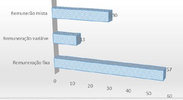 Segundo este gráfico, quanto a preferência dos funcionários em termos de remuneração, a maioria tem preferência por remuneração fixa, outros preferem uma remuneração variável e uma pequena parte tem preferência por um tipo de remuneração mista. As mais variadas formas de remuneração devem ser sempre tidas em conta, cada uma a sua maneira a medida das necessidades e situações que forem ocorrendo mas, com a finalidade de melhorar a motivação dos funcionários e colaboradores. Pois, conforme (Cunha, Rego, et.al. 2012) enfatizam a importância da remuneração na medida em que, segundo estes, em geral, sem suficientes recursos económicos, a convivência com a família e amigos fica dificultada, o acesso a bens de cultura e educação fica condicionado, a oportunidade para o divertimento, as viagens e as férias ficam comprometida e dessa forma o trabalho fica comprometido.