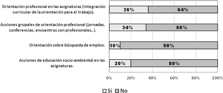 En las preguntas abiertas, son innumerables los comentarios que los estudiantes hacen subrayando la importancia de la orientación profesional en sus estudios, y sobre la necesidad de más y mejor formación y orientación sobre salidas laborales y búsqueda de empleo.