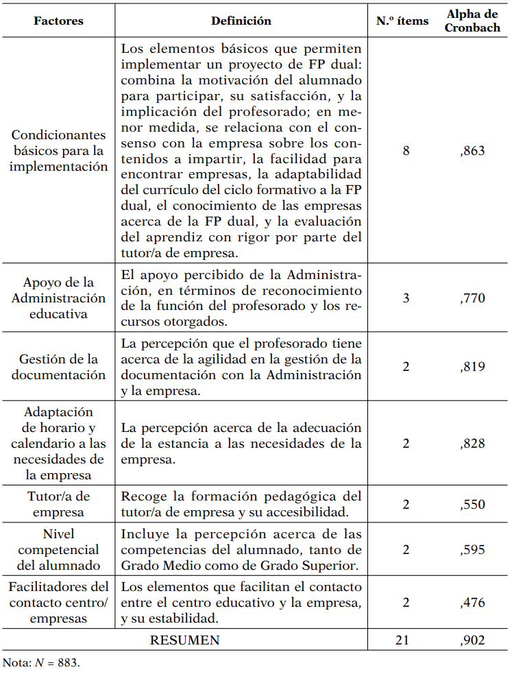 LA FP DUAL DESDE LA PERSPECTIVA DEL PROFESORADO: ELEMENTOS QUE CONDICIONAN SU IMPLEMENTACIÓN EN LOS CENTROS