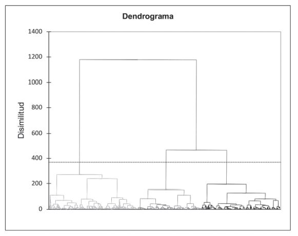 Para delimitar los perfiles de respuesta se ha optado por un análisis de Clúster Aglomerativo Jerárquico (CAJ) con el método de Ward, obteniéndose como resultado tres clases. Los datos nos indican que la clase más numerosa es la clase 1 (246 participantes), seguida de la clase 3 (220) y la clase 2 (180). La clase 1 es la que tiene más varianza (12.4) y la que tiene mayor distancia con el centroide. Como se puede apreciar en el dendrograma (Figura 3), esta clase 1 está más alejada de las otras dos clases, que están más relacionadas.