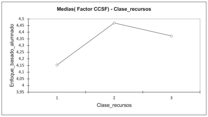 Se ha realizado la prueba de contraste Tukey (Tabla 3) para comprobar las diferencias entre clases. Las principales diferencias se dan entre la clase 1 con la clase 2 y 3. No hay diferencias significativas entre las clases 2 y 3 en sus puntuaciones medias al factor CCSF. Así, es la clase 1 la que puntúa, de forma significativa, más bajo el factor CCSF. Esta clase también tenía una valoración más baja de los recursos digitales y de los recursos procedimentales, como las fuentes documentales y orales.