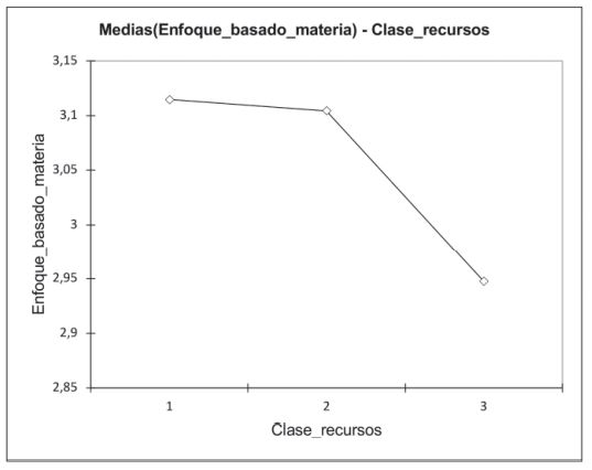 Se ha realizado la prueba de contraste Tukey (Tabla 4) para comprobar las diferencias entre clases. Las principales diferencias se dan entre la clase 3 con la clase 1 y 2. No hay diferencias significativas entre las clases 1 y 2 en sus puntuaciones medias al factor ITTF. Así, es la clase 3 la que puntúa, de forma significativa, más bajo el factor ITTF. A pesar de ello, no hay grandes diferencias entre las clases. La clase 3, que puntúa muy alto (igual que la clase 2) los recursos procedimentales y de una forma intermedia la mayoría de los recursos digitales tiene un mayor rechazo el enfoque basado en la materia (2.94). Las mayores diferencias en el enfoque basado en la materia están entre la clase 1 (que no puntúa tan bajo los recursos tradicionales como libros de texto y apuntes, pero sí algunos de los recursos digitales) y la clase 3 (3.11 frente a 2.94). La clase 2, que es la que puntúa más alto el enfoque basado en el estudiante, tiene una posición más cercana a la clase 1 en el enfoque basado en la materia (3.1).