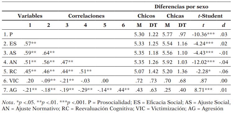 Se observaron diferencias significativas entre chicos y chicas en las dimensiones de la competencia social, siendo las chicas quienes presentaron puntuaciones más altas en todas las dimensiones analizadas (ver Tabla 1).