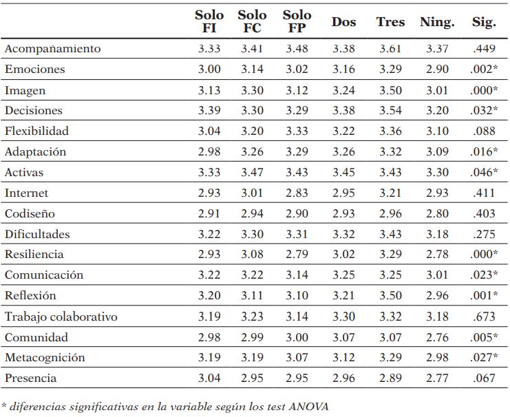 Todas las metodologías presentan diferencias significativas según esta variable, excepto la flexibilidad en la acción educativa.