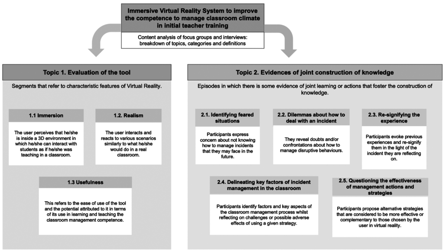 The answer to this second question is constructed based on the topics that emerged in the analysis of the focus groups (FG) involving students from eight degree specialisations of the Master’s degree (identified by numbers in the quotations) and the interviews (I) with the students who experimented in the IVRE. Thus, in this section, we first show evidence on the assessment of the potential of IVRE to promote the learning of the classroom climate management competence, and then provide evidence on how joint reflection on practice in IVRE promotes the learning of this competence.