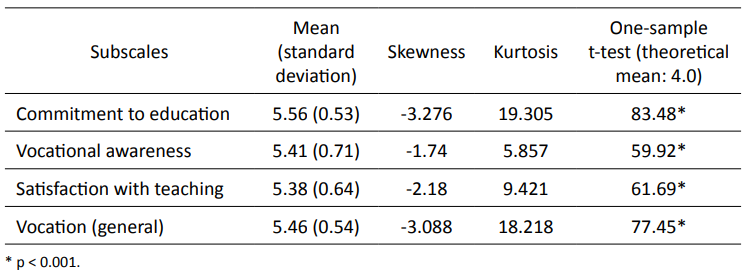 Teaching Vocation Questionnaire for teachers (CVOC-D). It is a brand-new instrument, whose purpose is to analyze the teaching vocation in general. It has three factors: a) satisfaction with teaching, b) vocational awareness, and c) commitment to education. It consists of 21 items with a 6-option Likert-type scale response, from totally disagree to totally agree. It was validated by construct and content with a general reliability coefficient of 0.96 (Torres-Hernandez, 2022).
