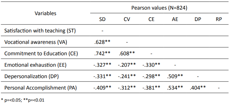 Based on the previous table, it is relevant the significant associations in the subscales of satisfaction with teaching and the components of burnout stand out.
