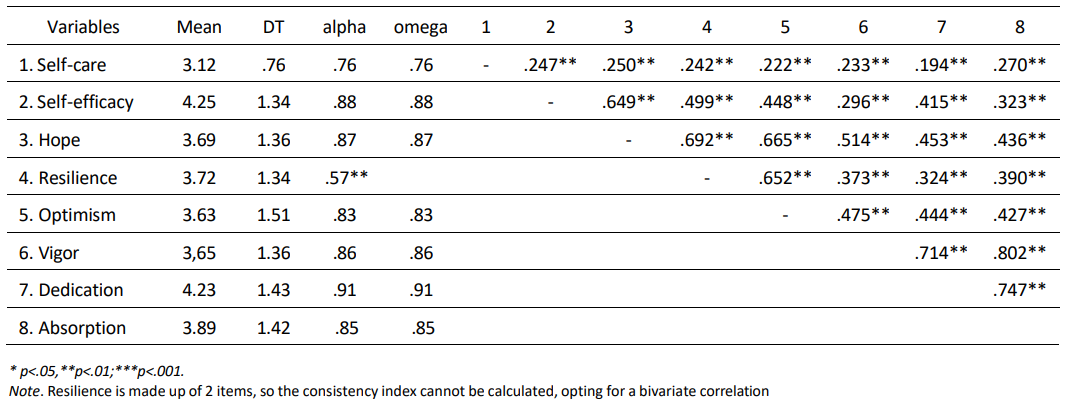 In this context, PsyCap would promote the use of other resources, such as self-care activities. High levels of PsyCap are associated with a balance between demands-resources and would enhance the effect of self-care activities on well-being.