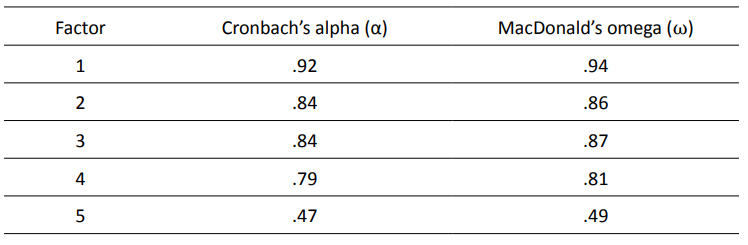 Viladrich, C., Angulo-Brunet, A., & Doval, E. (2017). Un viaje alrededor de alfa y omega para estimar la fiabilidad de consistencia interna. Anales de Psicología, 33(3), 755-782. http://dx.doi.org/10.6018/analesps.33.3.268401