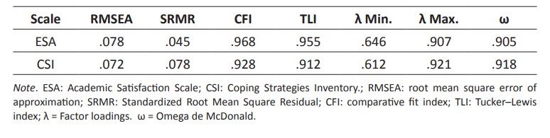 Finally, the factor structures of the scales used in the analysis were evaluated. As shown in Table 1, both scales presented satisfactory goodness-of-fit indices for the factorial structures and the reliability coefficients.