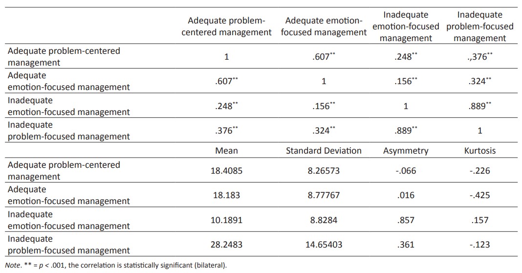 When faced with situations perceived as stressful, people use different coping strategies, defined as those skills and behaviors used by people to cope with internal and/or external demands that they perceive as stressful (Folkman, 1984). Coping is linked to cognitive and behavioral efforts to find individual and environmental resources to manage situations perceived as threatening and/or alarming (Lazarus & Folkman, 1984). These resources may involve seeking to modify the environment or using internal processes that allow reconstructing or reassigning the meaning associated with these stressful situations. Thus, coping involves self-regulation processes as the person detects the discrepancy between the demands of the situation and his or her resources to cope with it (González-Cabanech, 2018). In addition to the above, coping should be considered a dynamic and complex process whose purpose is the adaptation of subjects to contexts of insecurity, conflict and/ or threat (González et al., 2007).