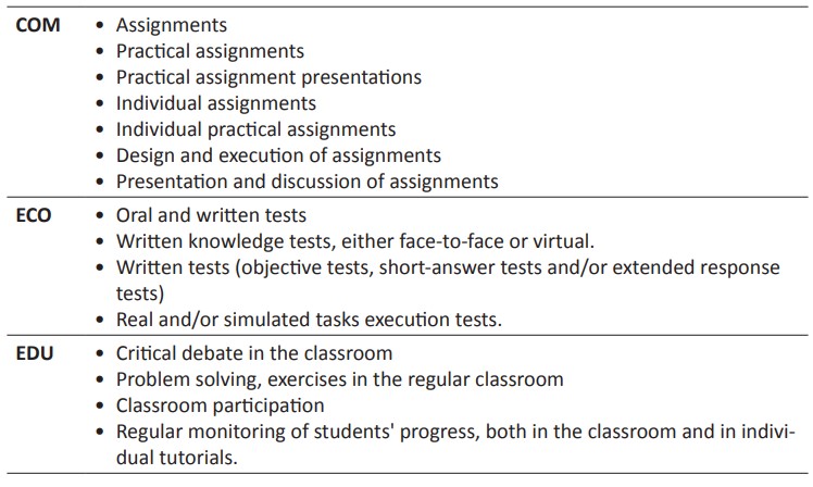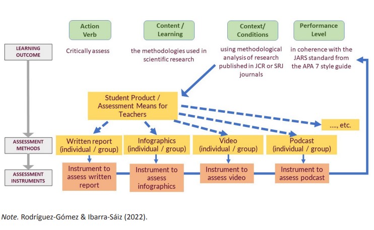 In this respect, monitoring and assessing the ILO requires assessment methods (products and actions by the students) which can be used to collect information on the assessment object, and assessment instruments that make it possible to pass judgement based on clear, known criteria to assess the level of achievement attained (Ibarra-Sáiz et al., 2023).