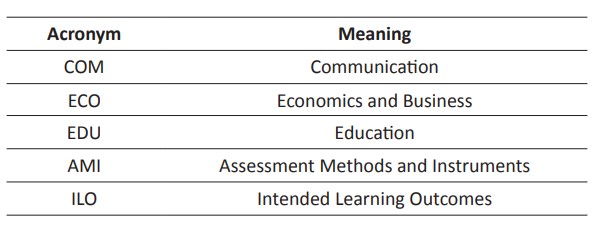 To make it easier to describe the sample, and the subsequent presentation of results and conclusions, Table 2 outlines the acronyms used and Table 3 presents the acronyms for the participating universities.