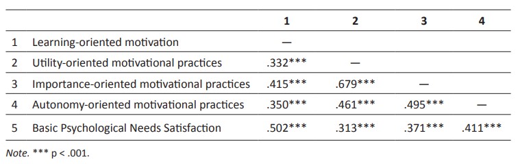 Previous analyses identified that of the nine teaching practices with motivational potential, only three were identified by students as having a significant motivational effect on motivational orientation towards learning: utility, importance, and autonomy. The analyses conducted in this study show that these practices correlate significantly with a motivational orientation toward learning and a positive and significant correlation with Basic Psychological Needs Satisfaction.