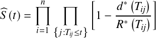 where, S(t) is the survival function, i is the index for an individual or subject, j represents the index for an event, Tijis the time from the j − 1th to the jth event for subject i, τi is the time between the initial event and the end of follow-up for subject i, Ci the censoring time. d∗(t) is the summation of the weighted average of the total number of observed uncensored recurrent times for a subject that are equal to t. d∗(t) represents the sum of the proportion of individuals of times that are equal at inter occurrence when at least an event. d∗(t) is evaluated at time t as,