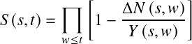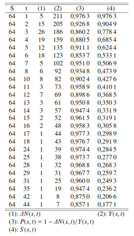 where, S (t, s) is the estimator of survival analysis, N(s,w) is one counting process and represents the number of observed events in the calendar period [0,s] with t≤w. It is calculated as,