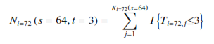 For the calculate of Yi(s, t) is used the equation (8). So with i = 72, t = 3 and s = 64,