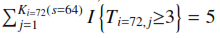 See that, there is only one time of occurrence with T = 3 on the unit with id = 72, then,