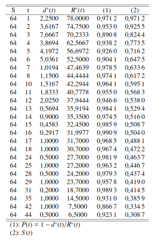 The Table 2 present the estimations of S(s,t) using PSH model. For these calculates are used the equations (5), (6), (7) and (8).