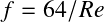 La determinación del coeficiente de fricción dependerá del régimen de flujo existente. Así, para el régimen laminar que implica un número de Reynolds menor o igual a 2000 (Re≤2000), en tuberías circulares lisas o rugosas y para cualquier fluido incompresible, se tiene un comportamiento como el mostrado en la ecuación (5), desarrollado por Hagen-Poiseuille [9, 10, 11, 12].