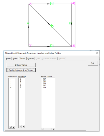 Al cargar el programa, del dibujo se obtiene automáticamente el número de nodos y de tuberías, de las cuales se deduce la cantidad de lazos.