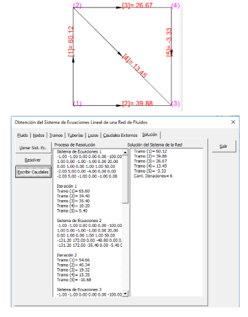 Mediante el subprograma del método de Gauss- Jordan para sistemas de ecuaciones, se resuelven los sistemas de ecuaciones lineales de la red conformada por las ecuaciones de continuidad en los nodos y de balance de energía en los lazos, con lo cual se dispone de una herramienta para su aplicación en la resolución de ejercicios.
