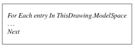 La codificación en Visual Basic Application (VBA) para AutoCAD 2015 permite recorrer en el archivo de dibujo activo todos los objetos que contiene, esto se puede hacer mediante la implementación de un ciclo [14] como se muestra en la Figura 2.