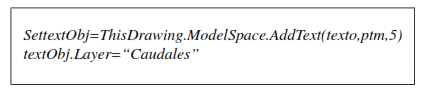 Los caudales obtenidos en este programa son escritos en el archivo de dibujo en una capa denominada Caudales mediante la instrucción de la Figura 6.