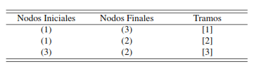 El sistema de ecuaciones se forma aplicando la ley de nodos y la ley de lazos, primeramente se busca en la lista de nodos la dirección de flujo en cada nodo, si el flujo sale del nodo se escribe - 1 en el arreglo en la celda correspondiente a la posición en la que se encuentre en la lista, y en caso contrario si entra el flujo al nodo se escribe +1 en dicha posición (Figura 13).